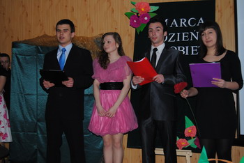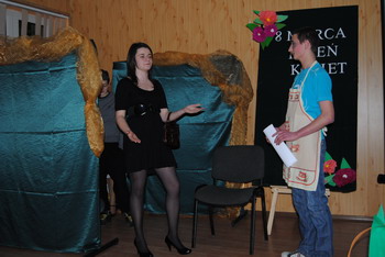 Dzień Kobiet w dniu 8 marca świętowano po raz pierwszy w 1911 roku. Dokładne ustalenie daty jest trudne ze względu na odmienne wersje różnych źródeł. Pewne jest jednak to, że już w starożytnej Grecji odbywały się festyny ku czci bogini życia. Mimo mijających mód i systemów politycznych dzień 8 marca nadal nie jest zwykłym dniem. Zauważa się tego dnia więcej klientów w kwiaciarniach i kawiarniach. Panie i dziewczęta otrzymują kwiaty i upominki. W tym właśnie dniu uświadamiamy sobie za co z głębi serca powinniśmy dziękować kobietom. Tak też było w naszej placówce. Młodzież przygotowała część artystyczną, były wiersze, piosenki, skecze oraz oczywiście najlepsze życzenia, kwiaty, słodycze dla naszych pań. A na scenie wystąpili: E. Czerwonka, K. Janeczko, E. Muskus, M. Gmiterek,K. Patałuch, D. Nazarko, P. Mazurek, M. Bochnak, D. Czajkowski, K. Michalewski. Nad muzyczną oprawą jak zawsze czuwał niezawodny R. Gancarz, tym razem w towarzystwie P. Chodzińskiej. Występ przygotowano pod opieką wychowawczyń: M. Szwic, K. Gmyrek, A. Wielgos.