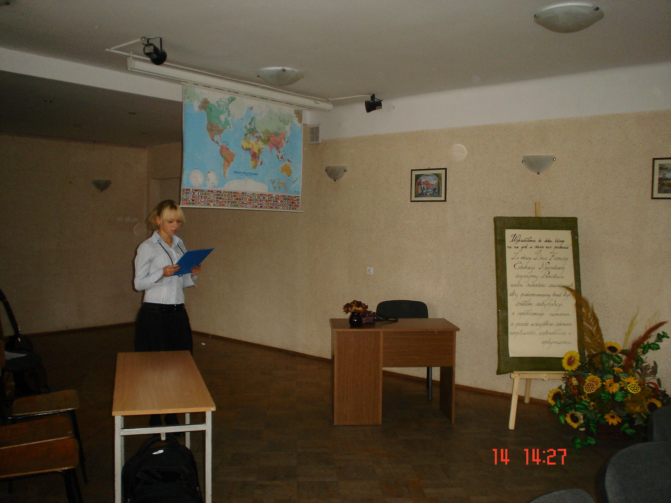 Te piękne słowa wychowankowie Bursy skierowali do dyrekcji, grona pedagogicznego oraz pracowników administracji i obsługi naszej placówki. Uroczyste spotkanie z okazji Dnia Edukacji Narodowej odbyło się w naszej placówce 14.10.br., a przygotowała je Młodzieżowa Rada Bursy pod okiem wychowawczyni p. Ewy Lubas. W kabaretowym programie, który pozwolił wszystkim zebranym choć na chwilę zapomnieć o codziennym trudzie, wystąpili bursiani artyści: Ania Mazurek, Małgosia Przewoźniak, Justyna Peszek, Rafał Mędroń, Kamil Śliwa, Kamil Morawski, Piotrek Fil, Hubert Sobczyszyn oraz pierwszoklasiści - Ewelina Czerwonka i Wojtek Karaś.