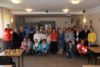 W dniu 18.04.2012 r. w Zespole Placówek Oświatowo – Wychowawczych w Jarosławiu odbył się pod patronatem Starosty Jarosławskiego Jerzego Batyckiego IX Powiatowy Konkurs Wiedzy o Zdrowiu pod hasłem „Pierwsza pomoc przedmedyczna”. Udział wzięło pięć dwuosobowych zespołów z placówek z terenu powiatu jarosławskiego i lubaczowskiego: Internat Zespołu Szkół im. gen. Józefa Kustronia w Lubaczowie, Internat Zespołu Szkół w Oleszycach, Dom Dziecka Nr 1 w Jarosławiu, Internat Specjalnego Ośrodka Szkolno – Wychowawczego w Jarosławiu i Zespół Placówek Oświatowo – Wychowawczych w Jarosławiu. Sprawdzenie wiadomości nastąpiło w formie testu indywidualnego oraz praktycznego. Warunkiem uczestnictwa w konkursie było wykonanie dowolną techniką plakatu o tematyce antynikotynowej, nawiązującej do zakazu palenia tytoniu. W jury konkursu zasiedli min. p. Beata Mędrala dyrektor Powiatowej Stacji Sanitarno – Epidemiologicznej w Jarosławiu i p. Renata Lotycz pracownik Powiatowej Stacji Sanitarno – Epidemiologicznej w Jarosławiu, p. T. Pawlak, p. T. Pelc i p. A. Olejarz ratownicy medyczni z Centrum Opieki Medycznej w Jarosławiu oraz p. Helena Panek wicedyrektor Zespołu Placówek Oświatowo – Wychowawczych w Jarosławiu. Po przeliczeniu wyników w kategorii testu z wiadomości o udzielaniu pierwszej pomocy przedmedycznej I miejsce zajął Internat Zespołu Szkół im. gen. Józefa Kustronia w Lubaczowie, II miejsce Dom Dziecka nr 1 w Jarosławiu, a III miejsce Internat Zespołu Szkół w Oleszycach. W kategorii plakat I i II miejsce zdobyły wychowanki: A. Gibała i K. Strójwąs z Zespołu Placówek Oświatowo – Wychowawczych w Jarosławiu, a III miejsce B. Ważny z Domu Dziecka nr 1 w Jarosławiu. Zwycięzcy otrzymali nagrody ufundowane przez Starostę Jarosławskiego oraz dyrektora Zespołu Placówek Oświatowo – Wychowawczych w Jarosławiu p. Bartłomieja Kordasa.