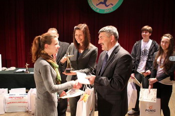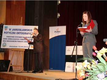 JAROSŁAWSKIE POTYCZKI ORTOGRAFICZNE CZYLI PODSTĘPNA PUSTUŁKA 12 kwietnia br. w Miejskim Ośrodku Kultury odbyła się piąta już edycja Potyczek Ortograficznych. Imprezę, jak co roku, współorganizowała nasza Placówka z niestrudzonym dyrektorem Bartłomiejem Kordasem na czele. Tym razem uczestnicy, których zgłosiło się ponad dwustu, zmierzyli się z tekstem o wdzięcznym tytule „Bladoniebieska pustułka i sczerniała wrona w szaroburym lesie”, autorstwa pracowników naukowych Instytutu Filologii Polskiej Uniwersytetu Rzeszowskiego. Dyktando odczytał dziennikarz TVP Rzeszów, Grzegorz Boratyn. Podczas, gdy ponad 40-sto osobowa grupa polonistów sprawdzała prace, przed zebranymi w sali MOK wystąpiły wokalistki z jarosławskich szkół, a wśród nich nasza wychowanka Paulina Chodzińska. Ciekawy wykład, poświęcony oczywiście polszczyźnie, wygłosił też prof. dr hab. Kazimierz Ożóg, dziekan Wydziału Filologicznego URz. Wyniki Konkursu ogłosił prowadzący imprezę p. B. Kordas. Mistrzami ortografii V Potyczek zostali: w kategorii gimnazjów: 1. Karolina Sobczak - Gminne Gimnazjum w Zespole Szkół w Roźwienicy 2. Agnieszka Jabłońska - Zespół Szkół im. Jana Pawła II, Publiczne Gimnazjum nr 5 w Jarosławiu 3. Mateusz Sowa - Gminne Gimnazjum w Zespole Szkół w Roźwienicy 4. Aleksandra Bąk – Zespół szkół im. Jana Pawła II, Publiczne Gimnazjum nr 5 w Jarosławiu 5. Gabriela Bury - Publiczne Gimnazjum nr 1 w Jarosławiu w kategorii szkół ponadgimnazjalnych: 1. Konrad Buszewski – Zespół Szkół Technicznych i Ogólnokształcących 2. Gabriela Krysa – Zespół Szkół Plastycznych 3. Magdalena Pokrywka – Zespół Szkół Technicznych i Ogólnokształcących 4. Justyna Bekier – Zespół Szkół Ekonomicznych i Ogólnokształcących 5. Klaudia Krzeptoń – Zespół Szkół Spożywczych, Chemicznych i Ogólnokształcących w kategorii studentów: 1. Joanna Mitka w kategorii mieszkańców: 1. Marta Jodłowska-Hanasiewicz 2. Natalia Stęchły 3. Adrianna Grzeszczak w kategorii gości: 1. Alicja Wosik - Wicewojewoda Podkarpacki 2. Mariusz Czajka - Dyrektor Zespołu Szkół Licealnych i Technicznych 3. Lucyna Paulo - Dyrektor Poradni Psychologiczno-Pedagogicznej. Gratulujemy laureatom, a szczególnie naszej wychowance Justynie Bekier.