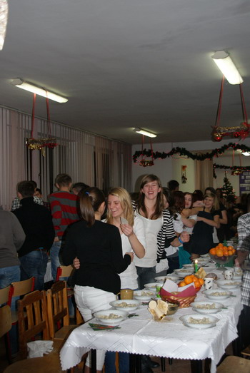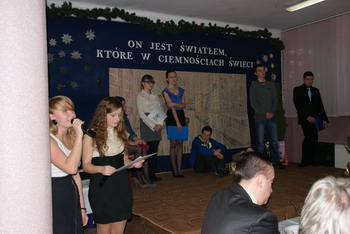 Ta myśl przyświecała spotkaniu opłatkowemu, jakie odbyło się dn. 20.12.2011r. w Zespole Placówek Oświatowo – Wychowawczych w Jarosławiu. Przy wigilijnym stole zasiadło około dwieście czterdzieści osób, a wśród nich zaproszeni goście: Etatowy Członek Zarządu Powiatu p. Z. Karwańska, Naczelnik Wydziału Oświaty p. B. Kordas, wikariusz parafii NMP Królowej Polski ks. P. Zawadzki oraz Dyrekcja Bursy p. H. Panek i p. B. Cholewiński, a także grono pedagogiczne i nasi wychowankowie. Na ten szczególny wieczór społeczność naszej placówki zawsze oczekuje z wielką radością. Już samym przygotowaniom towarzyszy wyjątkowa atmosfera. Znikają koleżeńskie nieporozumienia i daje się odczuć, że wszyscy razem oczekujemy właśnie na to Światło, które rozjaśnia mroki naszych codziennych trosk. Tegoroczną Wigilię przygotowała młodzież pod opieką wychowawczyń: J. Ilić’, B. Wyczawskiej, A. Wielgos.