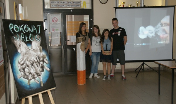 rozdawała ulotki i naklejki, zachęcała koleżanki i kolegów do zdrowego