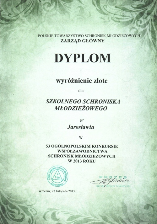 Szkolnego Schroniska Młodzieżowego w Jarosławiu, w kategorii
