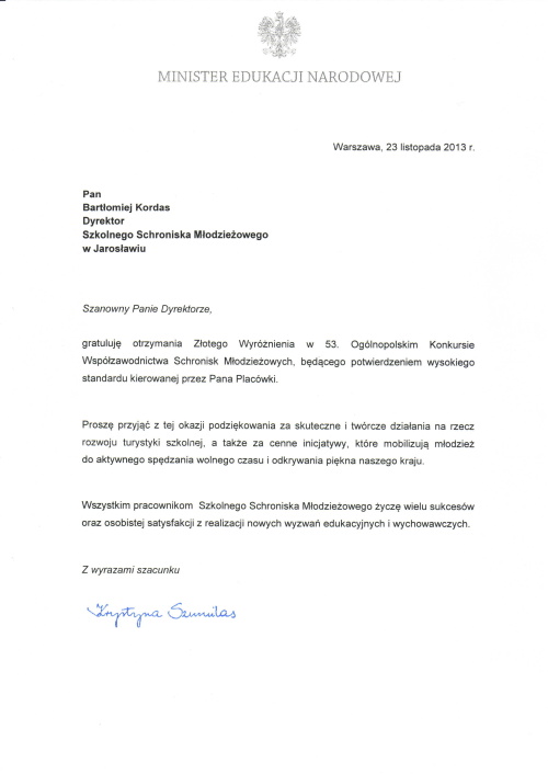honorowym patronatem Minister Edukacji Narodowej, Pani Krystyny Szumilas,
