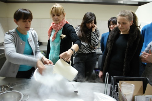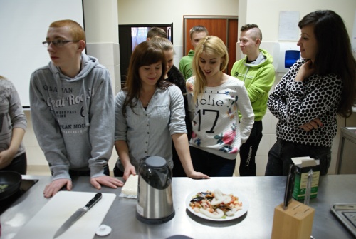 Zajęcia prowadzone były w dwóch grupach. Jedna grupa przygotowywała danie z kuchni włoskiej „Risotto z owocami morza”, natomiast druga grupa przygotowywała „Angielskie bułeczki z dżemem i bitą śmietaną”.