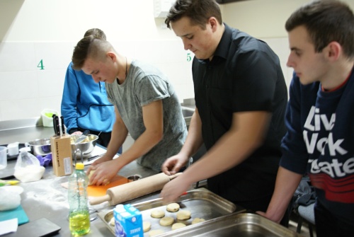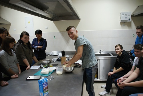 Młodzież świetnie się bawiła ucząc się przygotowywać włoskie jedzenie, bułeczki angielskie podczas przyrządzania, których swoje umiejętności kulinarne zaprezentowali chłopcy z grupy pierwszej, a szczególnie Bartek Sołek dzielnie robił ciasto, wszystkim smakowały.
